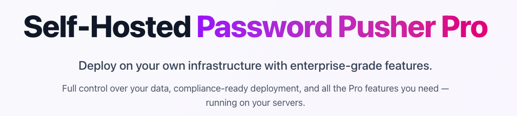 With Self-Hosted Password Pusher Pro, your data is yours. We even declare this in the EULA:
